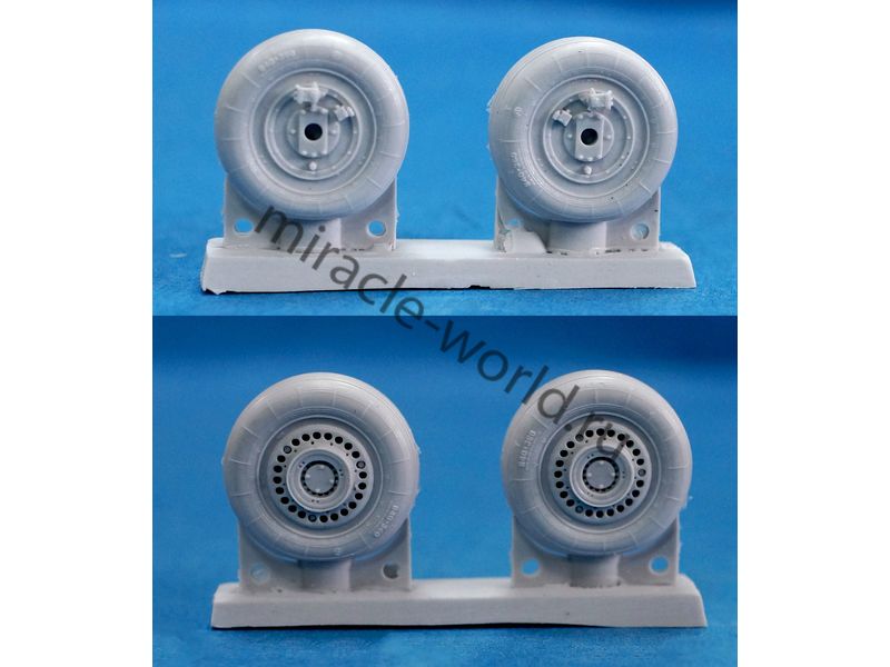RS48019 Колеса шасси самолета Су-25. Масштаб 1/48. Набор комплектуется смоляными колесами с имитацией нагрузки и окрасочными масками.