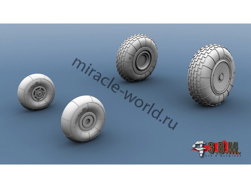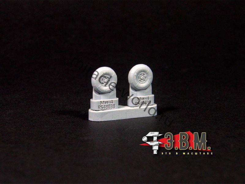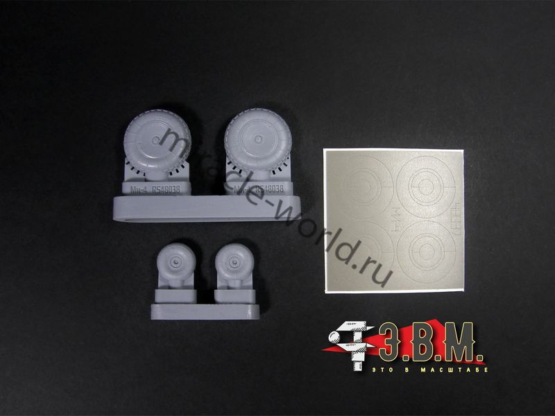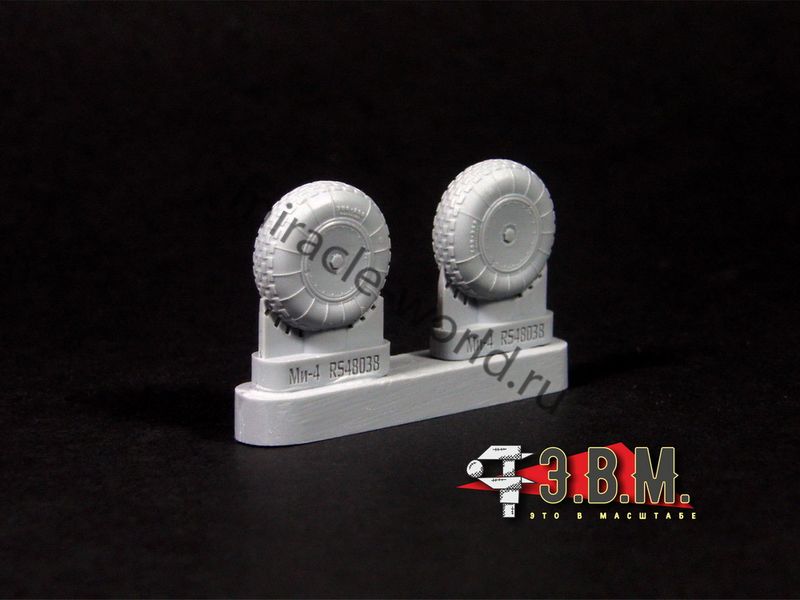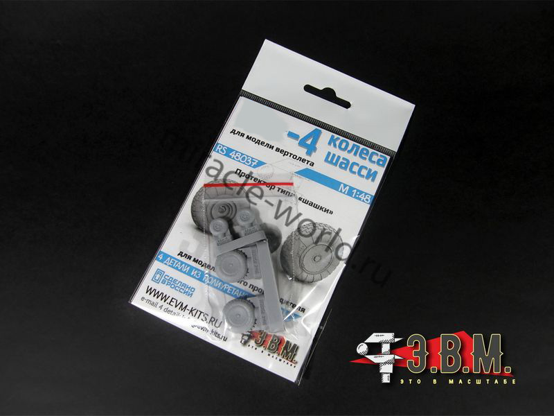 RS48037 Колеса шасси вертолета М тип 4 протектор "Шашки". Масштаб 1/48. Набор комплектуется смоляными колесами с имитацией нагрузки и окрасочными масками.