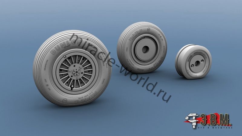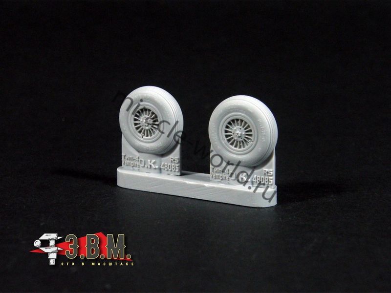 Э.В.М. RS48085 Колеса шасси De Havilland Vampire тип-4 (прямой протектор на спицованном диске) 1/48