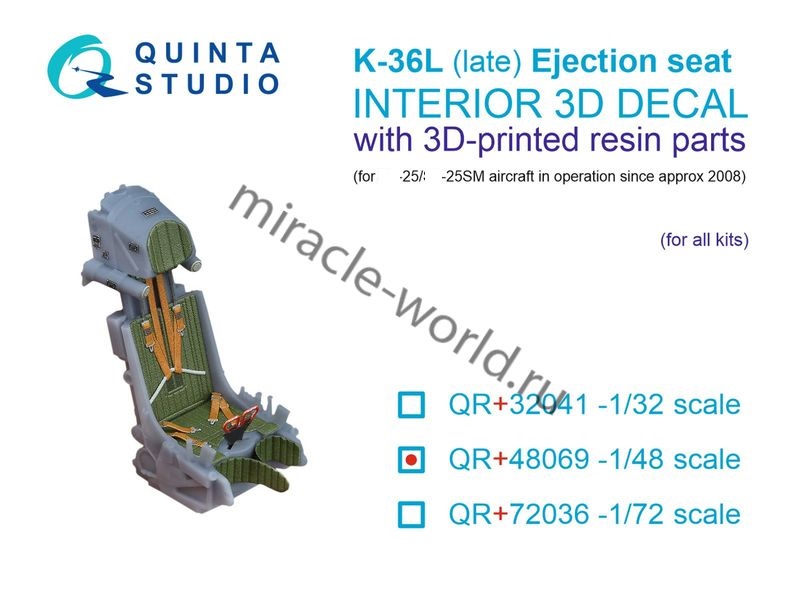 Дополнение для сборных моделей авиации Катапультное кресло К-36Л (позднее) в масштабе 1/48 от фирмы Quinta Studio (артикул QR+48069).