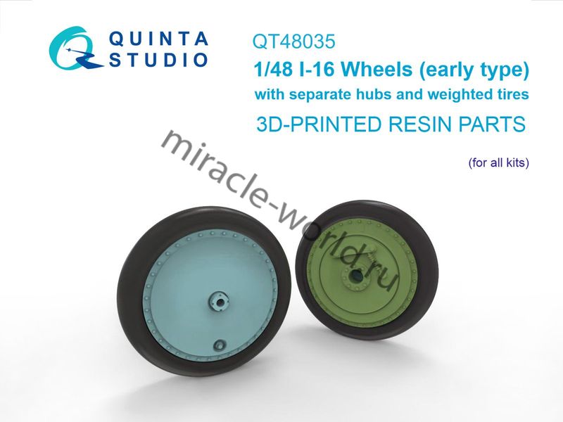 Дополнение для сборных моделей авиации Колеса И-16 (ранние) с отдельными нагруженными шинами в масштабе 1/48 от фирмы Quinta Studio (артикул QT48035).
