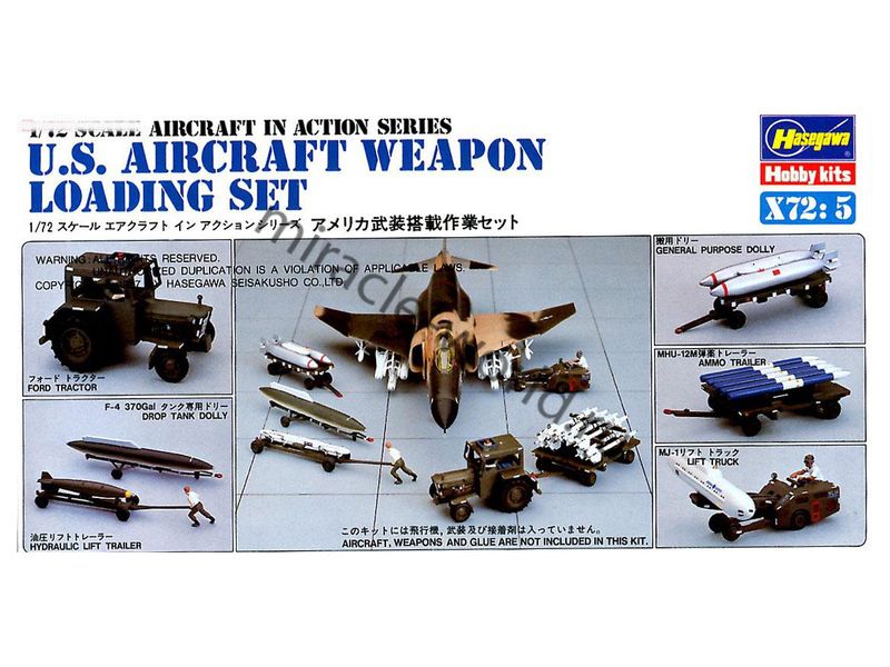 Дополнение для сборных моделей авиации, погрузчики авиавооружения U.S. Aircraft Weapon Loading Set в масштабе 1/72 от фирмы Hasegawa (артикул 35005).