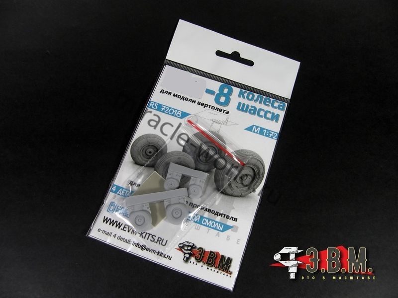 RS72018 Колеса шасси вертолета М тип 8. Масштаб 1/72. Набор комплектуется смоляными колесами с имитацией нагрузки и окрасочными масками.