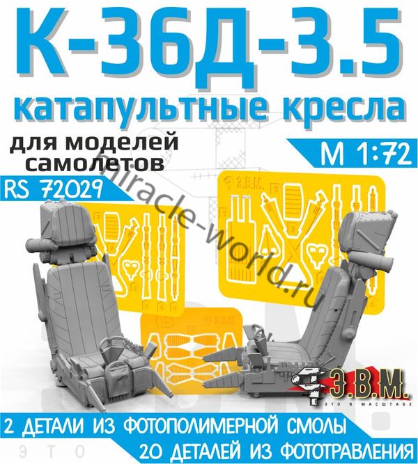 Э.В.М. RS72029 Катапультные кресла К36Д-3,5 (2шт.) +2 компл. подвесной системы из фототравления 1/72