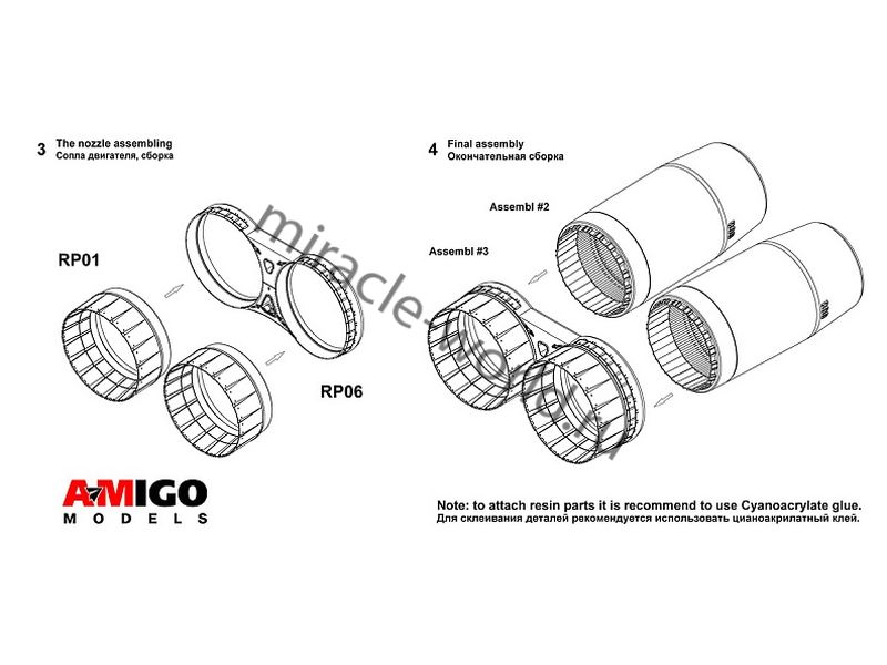 Дополнение для сборных моделей авиации Реактивное сопло двигателя НК-25 (2шт. в наборе + перемычка) в масштабе 1/72 от фирмы AMigo models (артикул 72008).