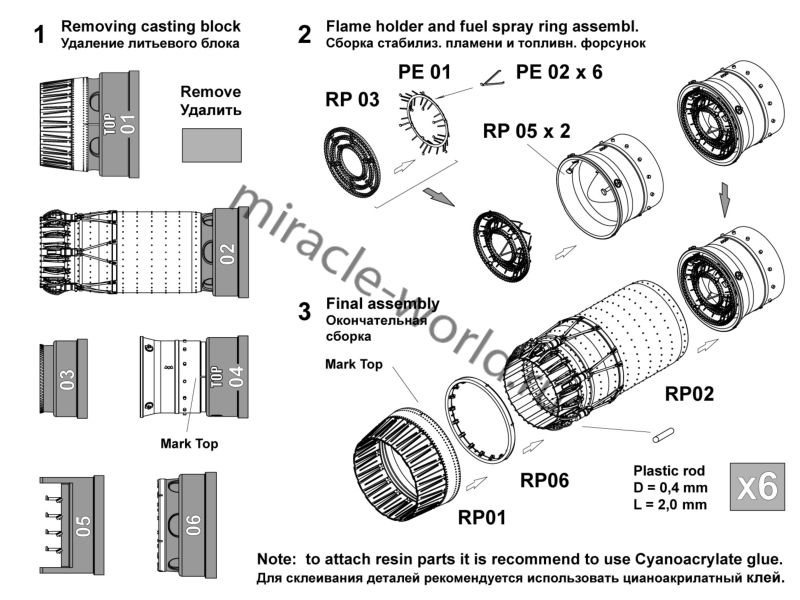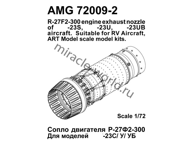 Подходит для моделей Самолет (М) тип 23-11, Самолет (М) тип 23ПД, Самолет (М) тип 23С, Самолет (М) тип 23У, Самолет (М) тип 23УБ. В комплект входят детали реактивного сопла, форсажной трубы, стабилизатора пламени, форсунок форсажной камеры и фронтального устройства. Рекомендуется для моделей "RV Aircraft", "ArtModel".
