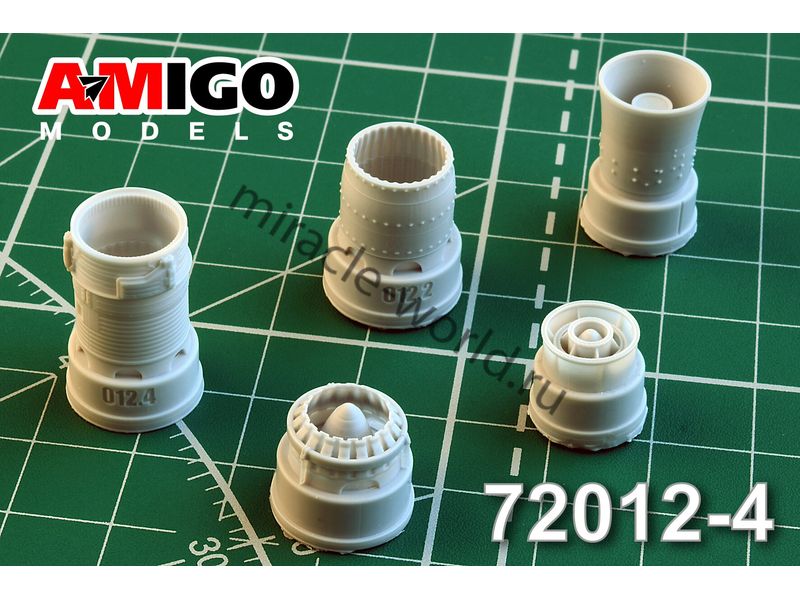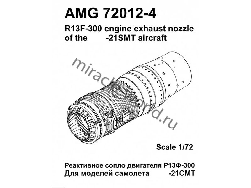 Подходит для моделей Самолет (М) тип 21СМТ. В комплект входят детали реактивного сопла, форсажной трубы, стабилизатора пламени и фронтального устройства.