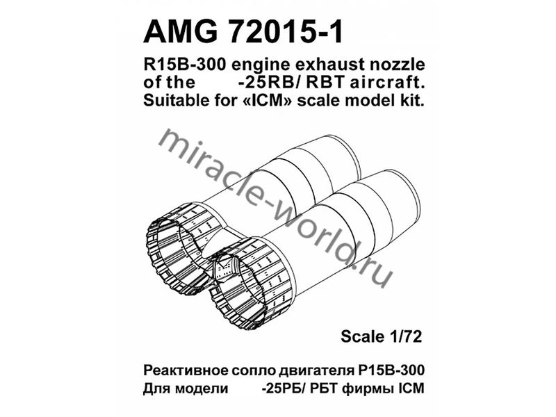 Подходит для моделей Самолет (М) тип 25РБ, Самолет (М) тип 25РБТ. В комплект входят детали реактивного сопла, форсажной трубы, стабилизатора пламени и фронтального устройства. Рекомендуется для моделей "ICM".