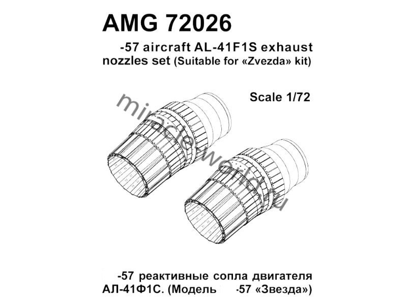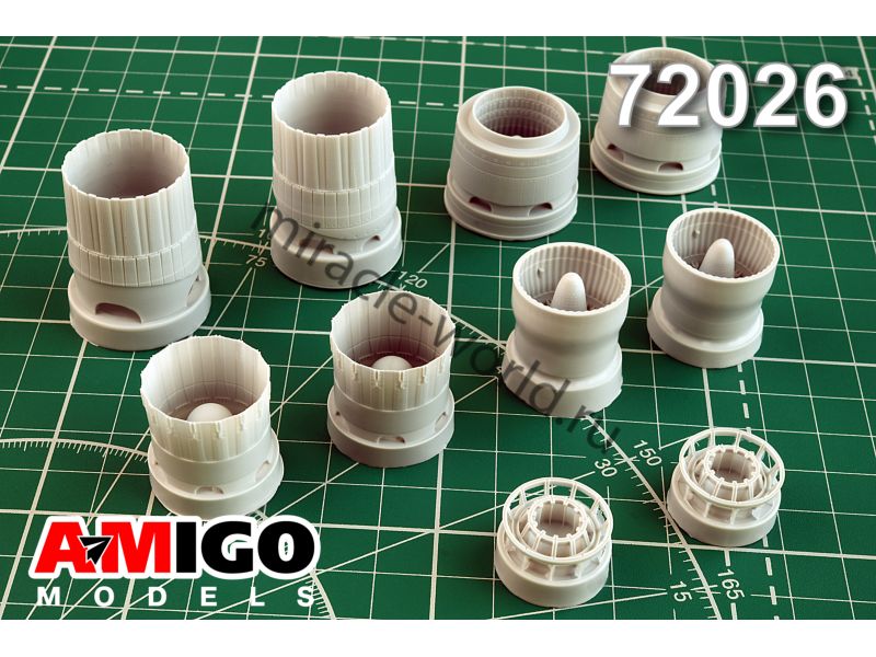 Дополнение для сборных моделей авиации Реактивное сопло двигателя АЛ-41Ф1С с УВТ (в комплекте два сопла в отклоненном, стояночном положении) в масштабе 1/72 от фирмы AMigo models (артикул 72026).