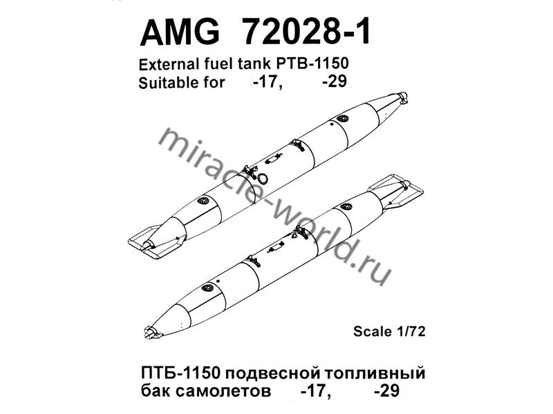 Дополнение для сборных моделей авиации Подвесной топливный бак ПТБ-800 (в комплекте два бака) в масштабе 1/72 от фирмы AMigo models (артикул 72028-1).