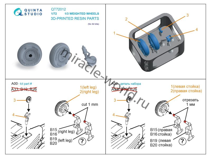 Дополнение для сборных моделей авиации Колеса шасси под нагрузкой Самолет (Я) тип 1/ Самолет (Я) тип 3 (для всех моделей) в масштабе 1/72 от фирмы Quinta Studio (артикул QT72012).