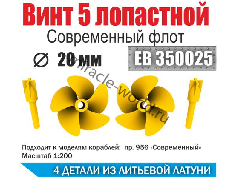 Эскадра EB 350025 Винт 5-ти лопастной (2шт.) для эсминца пр.956 "Современный" и др. кораблей 1/200