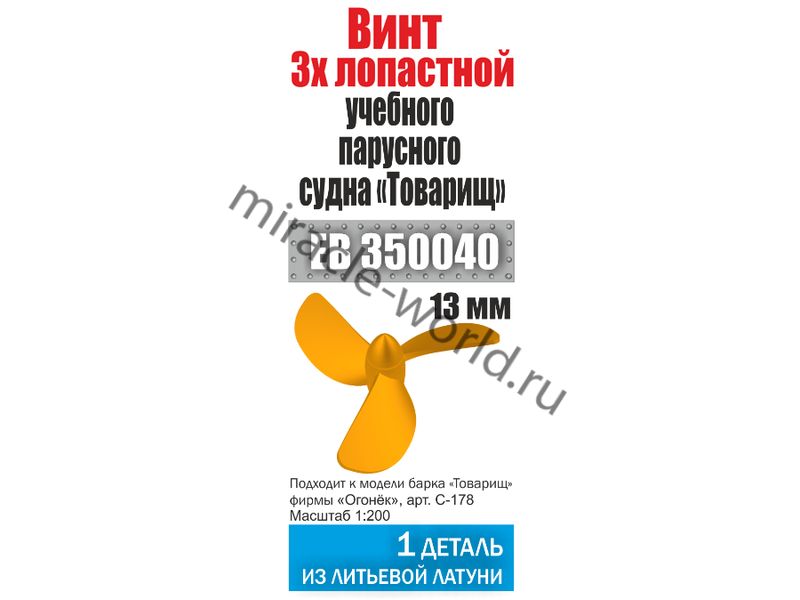Эскадра EB 350040 Винт 3-х лопастной (1шт.) для барка "Товарищ" 1/200