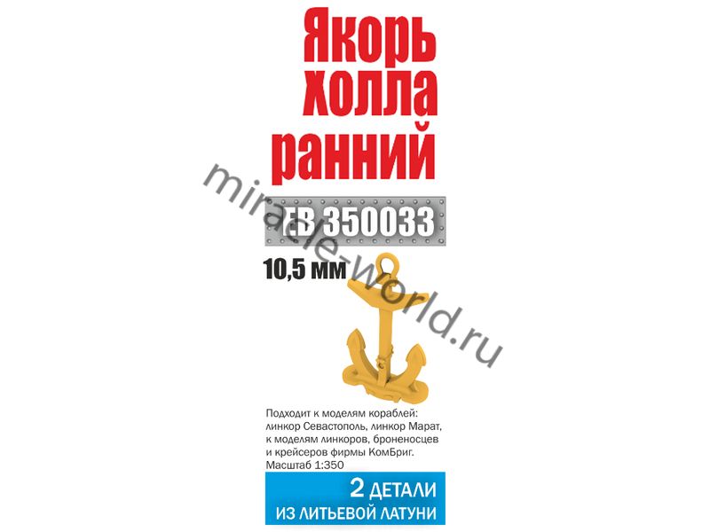 Эскадра EB 350033 Якорь Холла (ранний, 2шт.) для линкора "Севастополь" и других кораблей 1/350