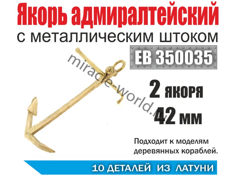 Эскадра EB 350035 Якорь адмиралтейский 42 мм с металлическим штоком (2шт.) 1/72