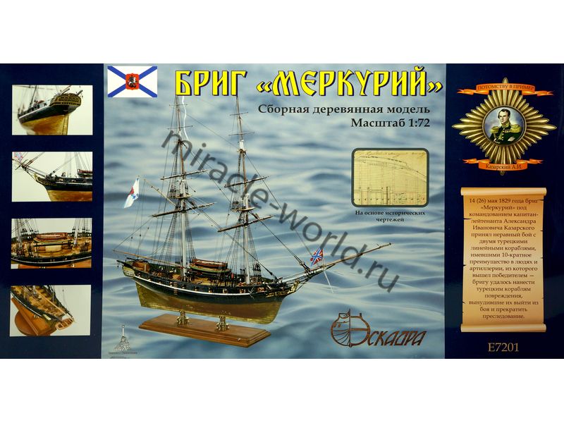 Сборная модель из дерева Бриг "Меркурий" в масштабе 1/72 от фирмы Эскадра (артикул 7201).