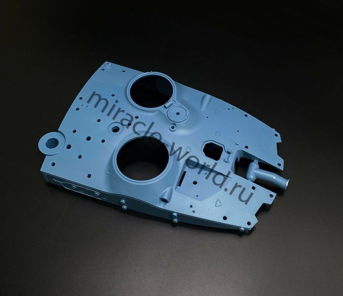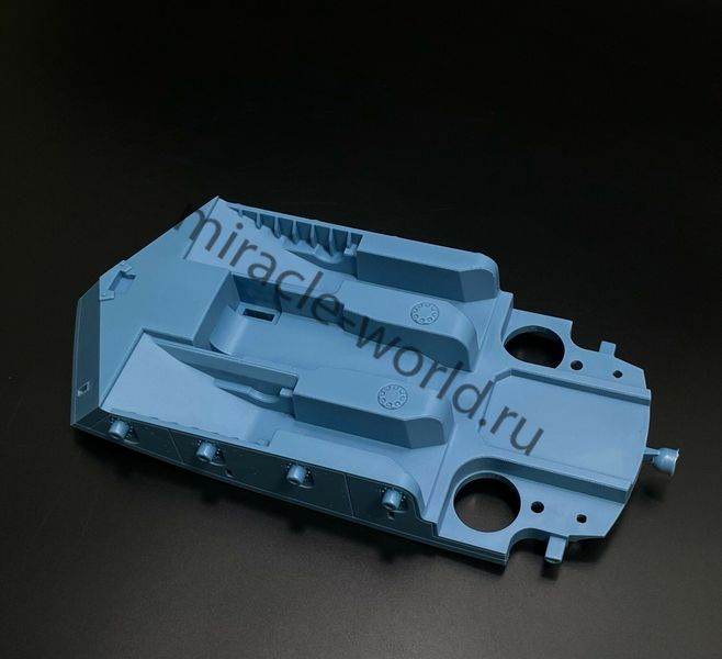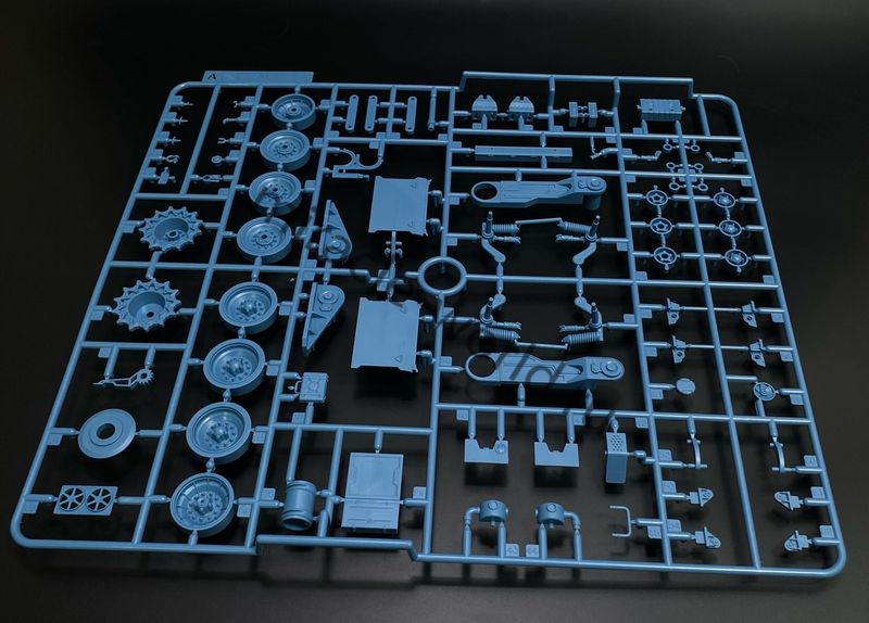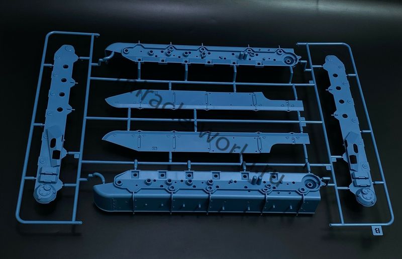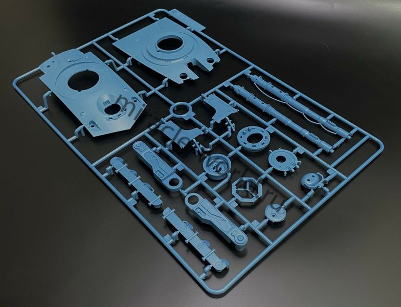 Цветной пластик, сборка без клея, рабочие наборные траки, светодиодная подсветка в комплекте. Два варианта сборки: боевой танк и стационарная тяжелая огневая точка. В набор входит специальный модуль с динамиком, издающий 12 предустановленных голосовых команд, исходящих от командира танка с фоновыми звуками рации. Оптические приборы наблюдения и рассеиватели фар выполнены из прозрачного пластика. Люки можно собрать в открытом или закрытом положении.