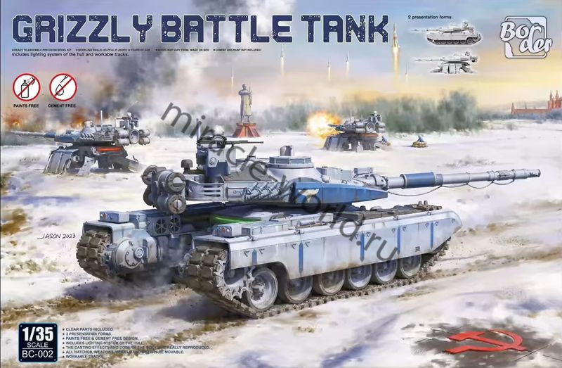 Сборная модель боевого танка из игры "Red Alert" "Grizzly" / "Гризли" в масштабе 1/35 от фирмы Border Model (артикул BC-002).