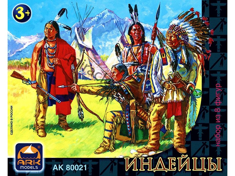 Набор коллекционных фигур Индейцы (8 фигур) в масштабе 65-мм от фирмы ARK Models (артикул 80021).