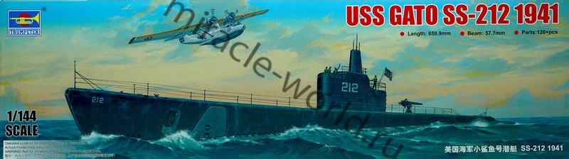 Сборная модель американской дизельной подводной лодки SS-212 "USS Gato" образца 1941г. в масштабе 1/144 от фирмы Trumpeter (артикул 05905).