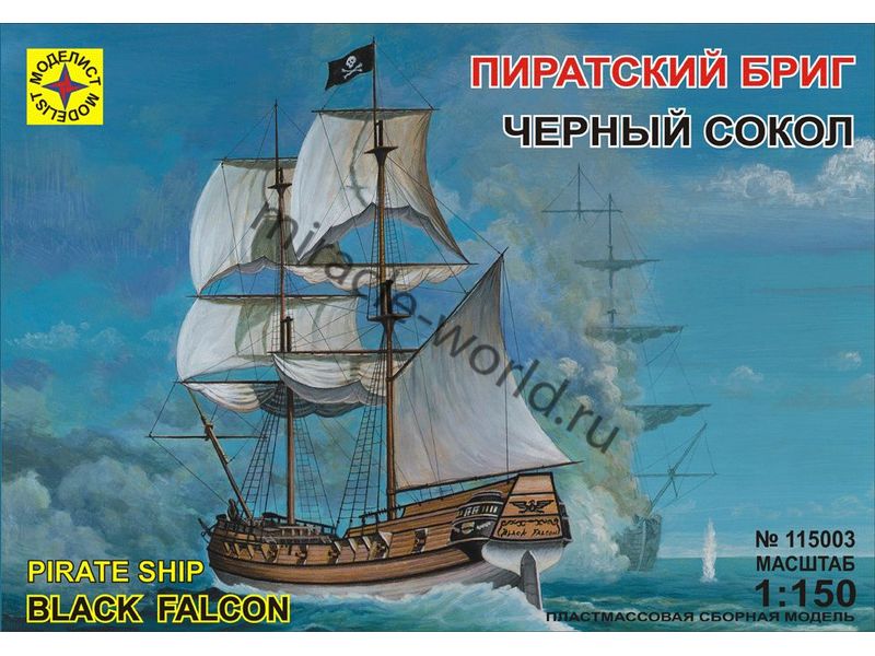 Сборная модель пиратского брига "Black Falcon" / "Черный Сокол" в масштабе 1/150 от фирмы Моделист (артикул 115003).