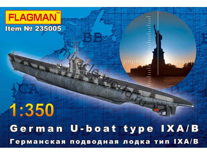 Сборная модель немецкой дизельной подводной лодки Type IXA/B U-Boat в масштабе 1/72 от фирмы Flagman (артикул 235005).