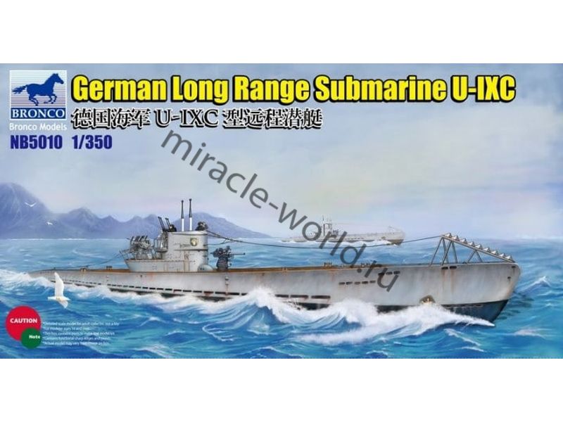 Сборная модель немецкой дизель-электрической подводной лодки Type IXC в масштабе 1/350 от фирмы Bronco Models (артикул NB5010).