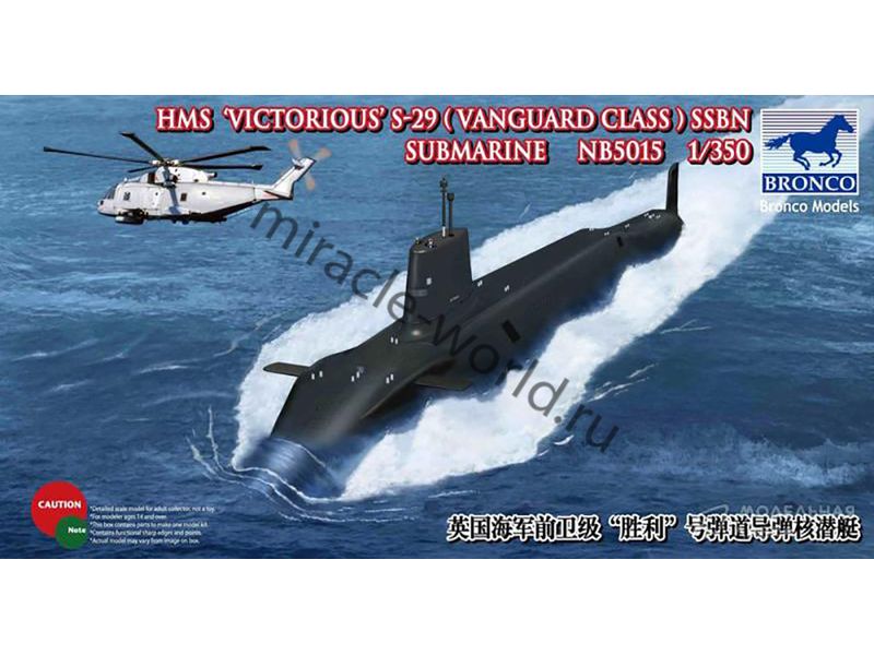 Сборная модель британской атомной стратегичесчкой подводной лодки HMS «Victorious» (S29) Vanguard-class в масштабе 1/350 от фирмы Bronco Models (артикул NB5015).