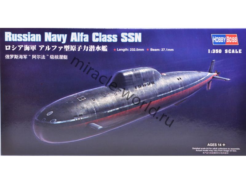 Сборная модель советской многоцелевой атомной подводной лодки "Лира" проект 705 в масштабе 1/350 от фирмы Hobby Boss (артикул 83528).