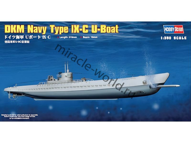 Сборная модель немецкой дизельной подводной лодки Type IX-C U-Boat в масштабе 1/350 от фирмы Hobby Boss (артикул 83508).
