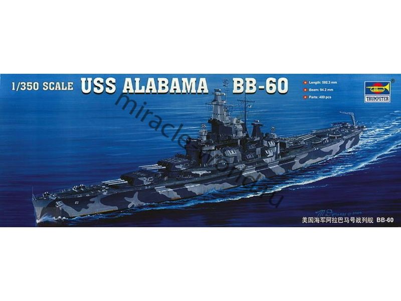 Сборная модель американского линкора BB-60 "USS Alabama" в масштабе 1/350 от фирмы Trumpeter (артикул 05307).