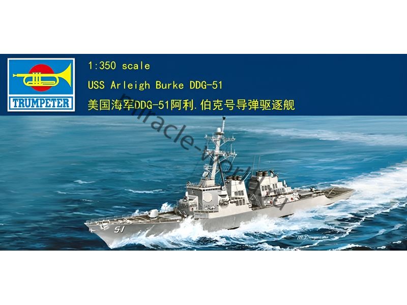 Сборная модель американского эсминца УРО DDG-51 "USS Arleigh Burke" в масштабе 1/350 от фирмы Trumpeter (артикул 04523).