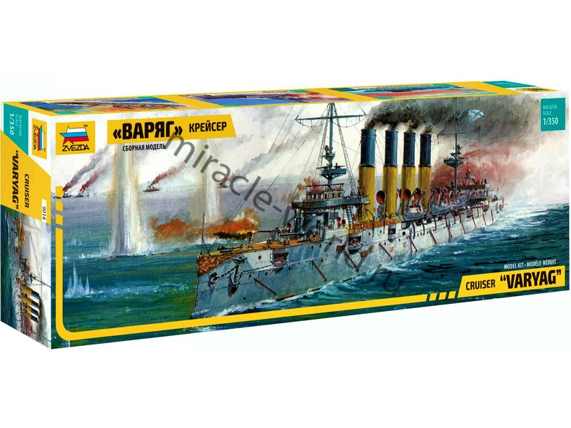 Сборная модель РИФ, советского, российского бронепалубного крейсера 1-го ранга "Варяг" в масштабе 1/350 от фирмы Звезда / Zvezda (артикул 9014).