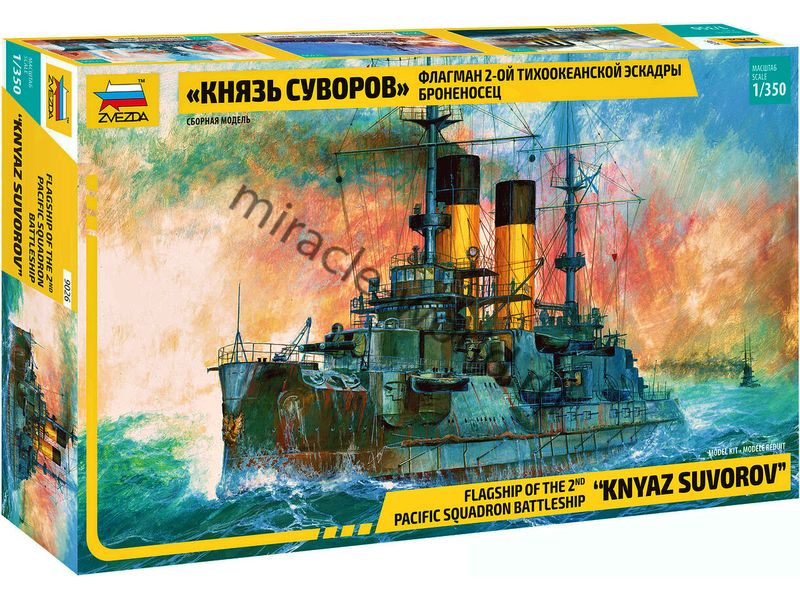 Сборная модель российского (РИФ) эскадренного броненосца "Князь Суворов" в масштабе 1/350 от фирмы Звезда / Zvezda (артикул 9026).
