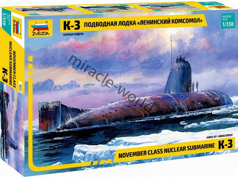 Сборная модель советской атомной подводной лодки К-3 "Ленинский комсомол" проект 627 в масштабе 1/350 от фирмы Звезда / Zvezda (артикул 9035).