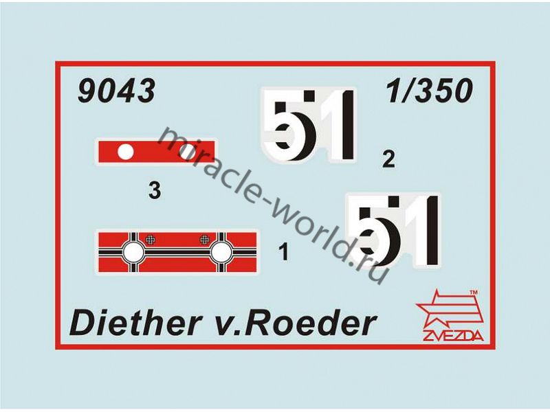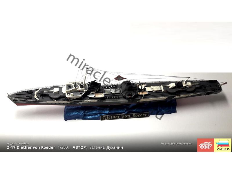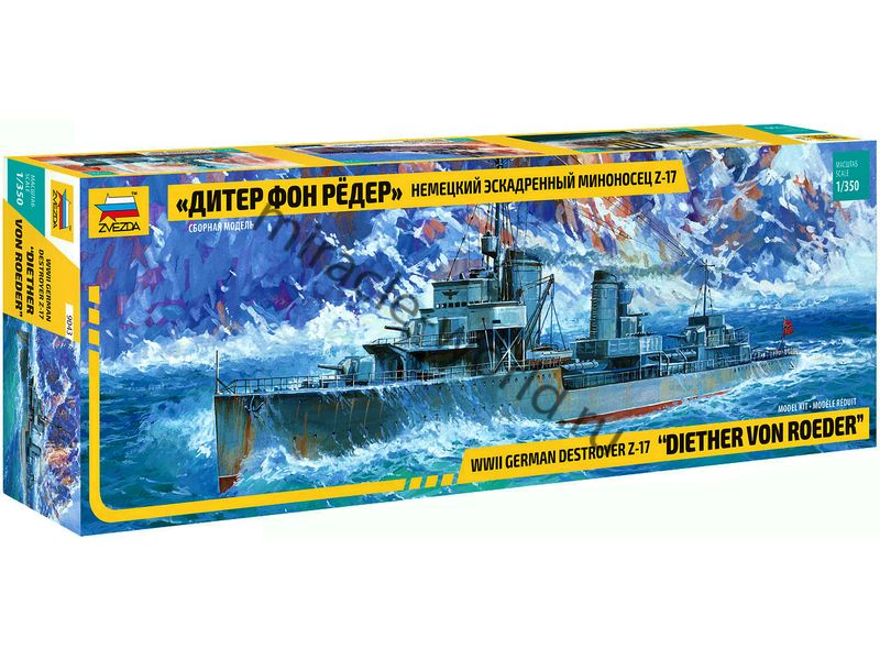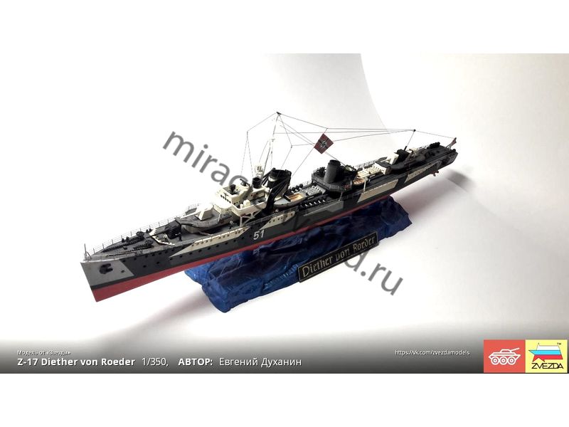 Сборная модель немецкого эсминца Z-17 (тип 1936) "Diether von Roeder" в масштабе 1/350 от фирмы Звезда / Zvezda (артикул 9043).