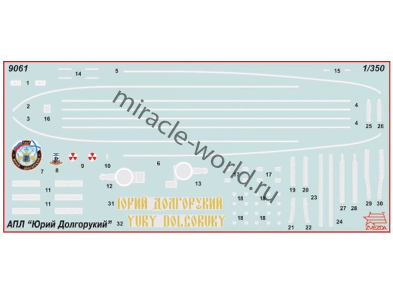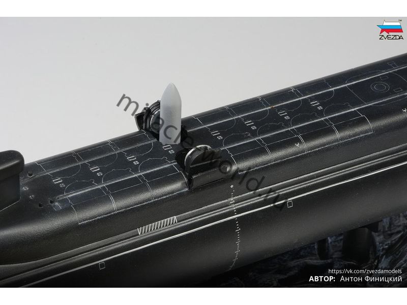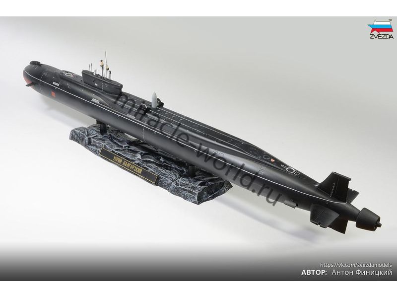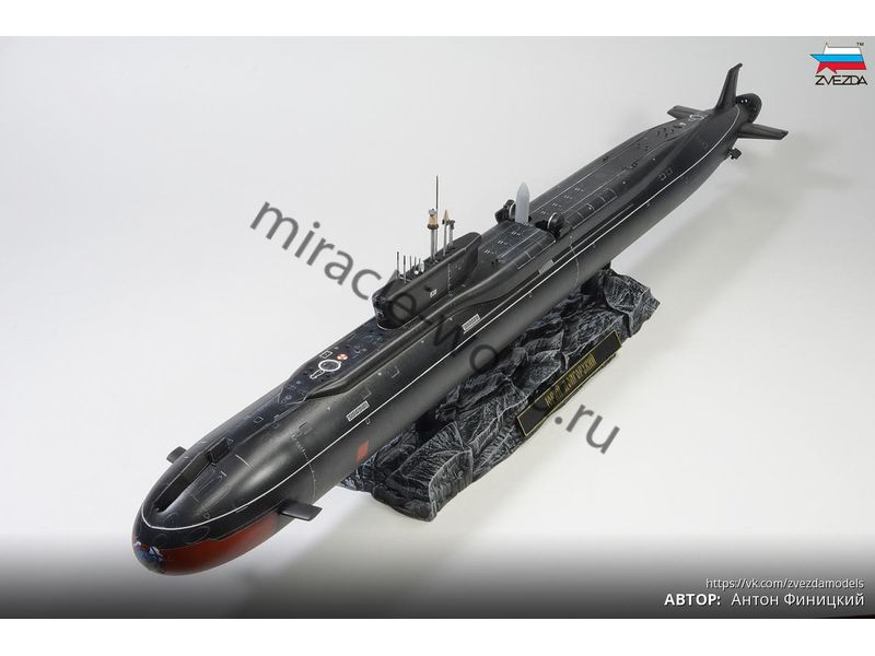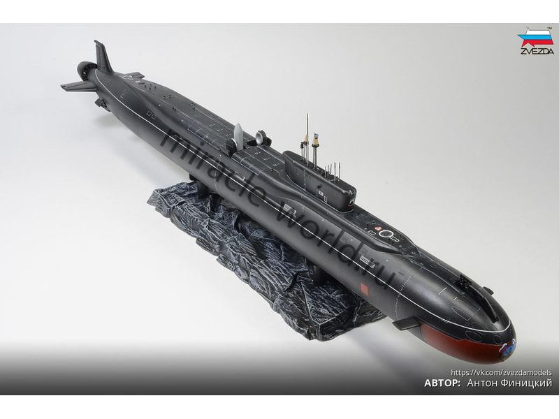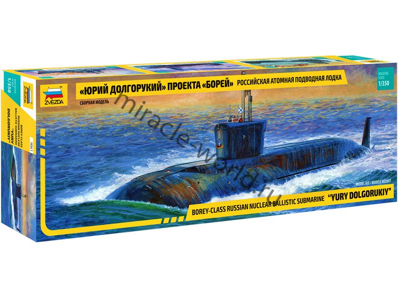 Сборная модель российской атомной подводной лодки стратегического назначения 4-го поколения К-535 "Юрий Долгорукий" проект 955 "Борей" в масштабе 1/350 от фирмы Звезда / Zvezda (артикул 9061).