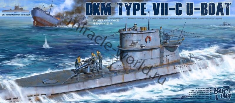 Сборная модель надводной части немецкой дизель-электрической подводной лодки Type VIIC U-boat в масштабе 1/35 от фирмы Border Model (артикул BS-001).