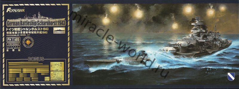 Сборная модель немецкого линкора "Scharnhorst" обр. 1943г. в масштабе 1/700 от фирмы Fly Hawk (артикул FH1148S).
