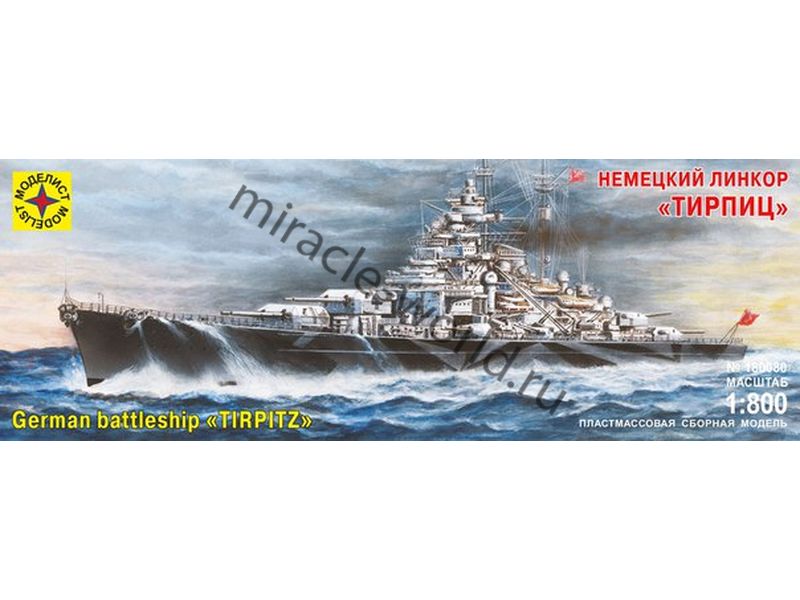 Сборная модель немецкого линкора "Tirpitz" / "Тирпиц" в масштабе 1/700 от фирмы Моделист (артикул 180080).