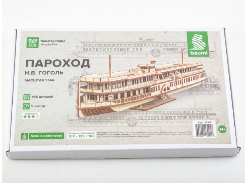 Сборная модель парохода из дерева "Н.В. Гоголь" в масштабе 1/144 от фирмы Baumi (артикул 13201).