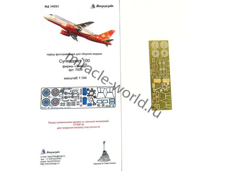 МД 144201 Набор фототравления для сборной модели Суперджет 100 от Звезды. Масштаб 1:144 Материал: латунь 0,17 мм. Набор комплектуется пластиной фототравления и цветной инструкцией. уровень сложности - простой.