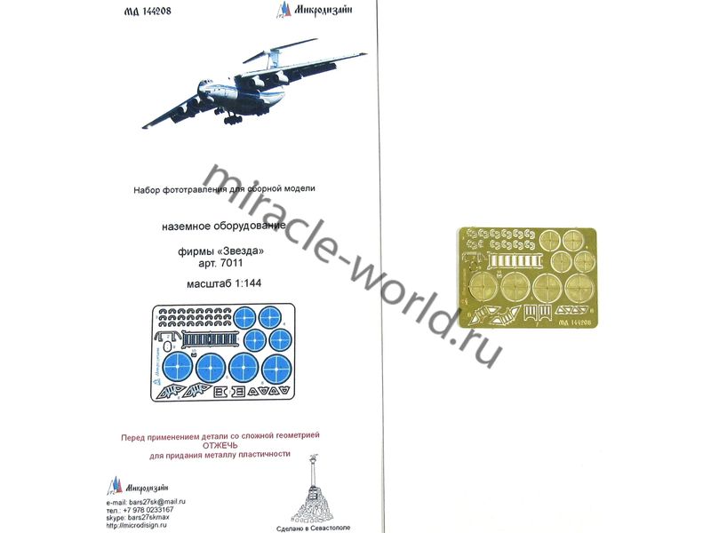МД 144208 Набор фототравления Ил-76МД от Звезды наземное оборудование. Масштаб 1:144. Материал: латунь 0,17 мм. Набор комплектуется платой фототравления и цветной инструкцией. Уровень сложности - простой.