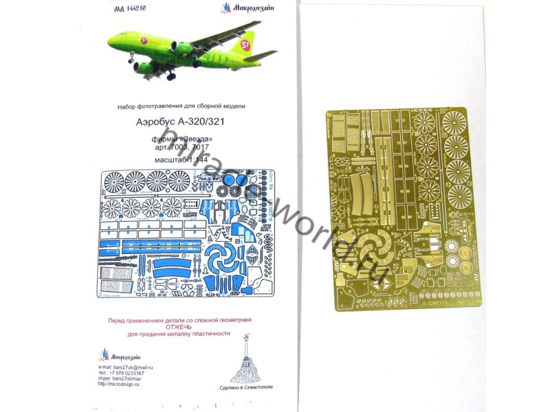 МД 144210 Набор фототравления для модели Аэробус А 320/321 от Звезды. Набор комплектуется платой фототравления, цветной инструкцией. Количество уникальных деталей: 64 шт. Уровень сложности - средний.