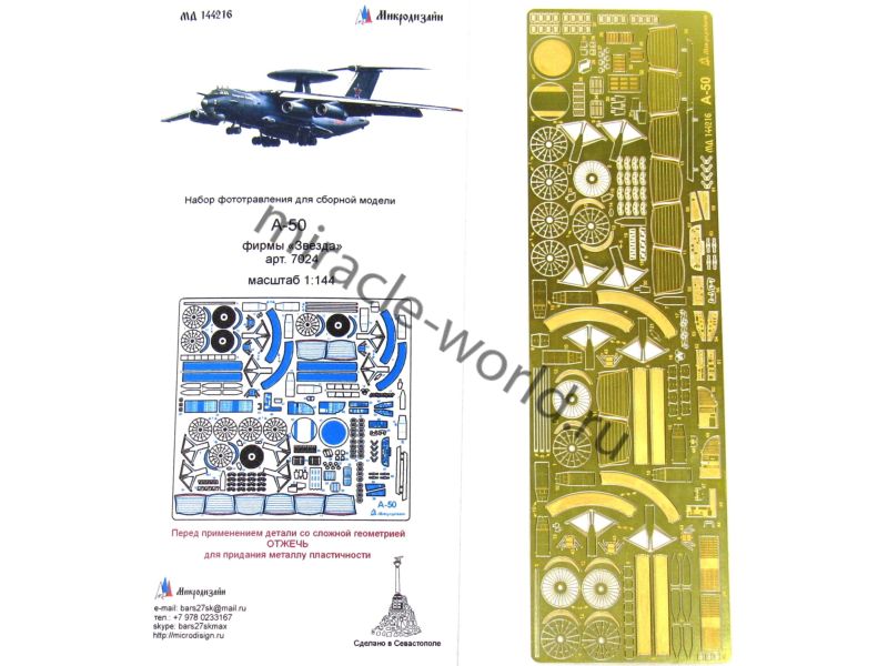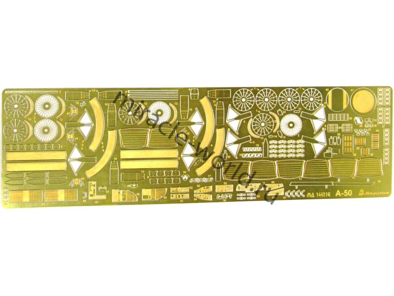 МД 144216 Набор фототравления А-50 от Звезды. Масштаб 1:144. Материал: латунь 0,17 мм. Набор комплектуется платой фототравления и цветной инструкцией. Уникальных деталей -60 шт. Уровень сложности: средний.