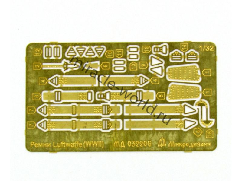МД 032206 Набор фототравления ремней привязных авиационных Люфтваффе периода Великой Отечественной войны. Масштаб 1:32, Материал: латунь 0,15 мм. Набор комплектуется пластиной фототравления Количество уникальных деталей 15. Уровень сложности: начальный.