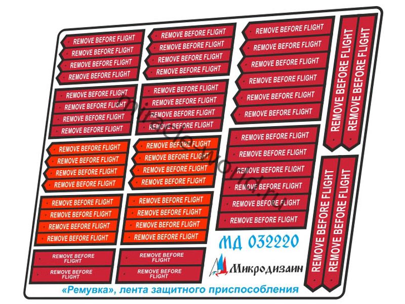 Микродизайн 032220 Ремувки "Remove before flight" /цветной набор фототравления/ 1/32