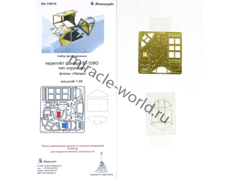 МД 048210 Набор фототравления для изготовления фонаря модели самолета Bf-109 от Звезды. Масштаб 1:48. Набор комплектуется платой фототравления и набором полиамидной пленки, раскроенной лазером.