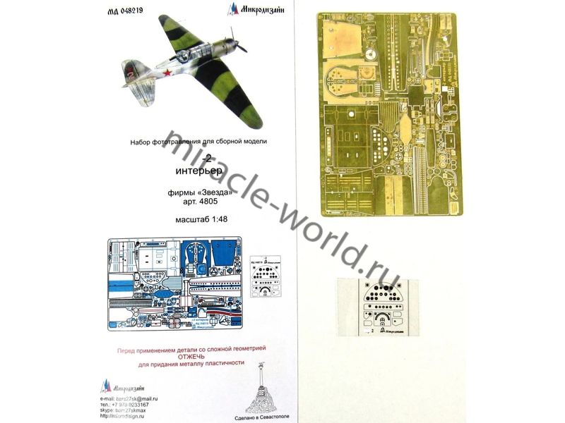 МД 048219 Набор фототравления Су-2 интерьер от Звезды. Масштаб 1:48, Материал: латунь 0,17 мм. Набор комплектуется пластиной фототравления, пленкой приборной доски и полноцветной инструкцией. Количество уникальных деталей 69. Уровень сложности: средний.