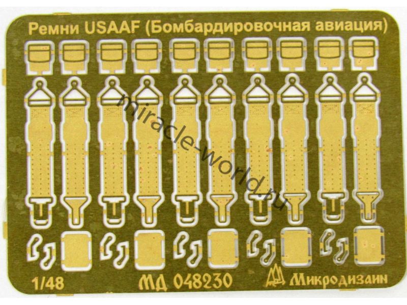 МД 048230 Набор фототравления ремней привязных авиационных USAAF (бомбардировочная авиация) периода Второй мировой войны. Масштаб 1:48, Материал: латунь 0,15 мм. Набор комплектуется пластиной фототравления Количество уникальных деталей 4. Уровень сложности: начальный.